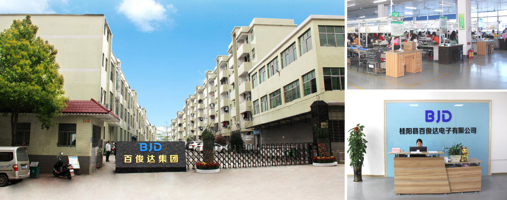 BJD Group Hunan branch factory with independent industrial park,1000 staffs,with excellent and stable management team, With transformer workshop, cable workshop , AI & SMT automatic line, injection line, assembly line and 10pcs assembly line,monthly production capacity up to 8 million pieces.